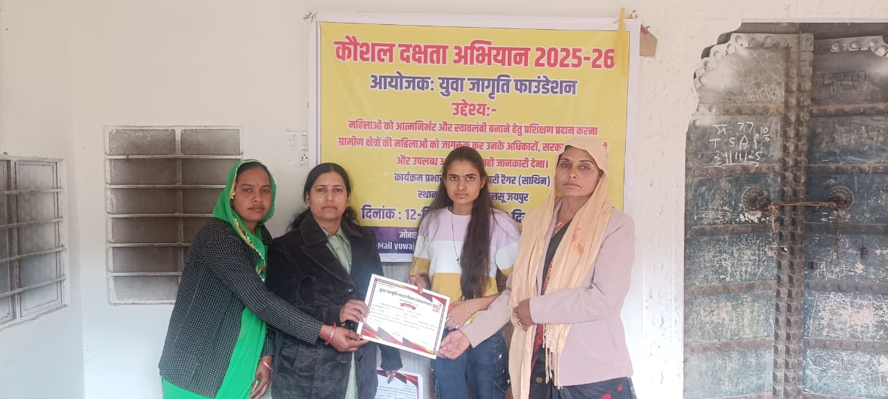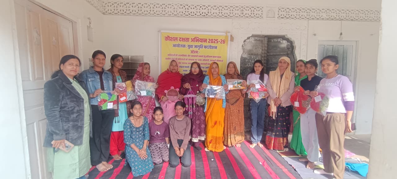 भठों की गली स्थित युवा जागृति फाउंडेशन के सहयोग से तीन दिवसीय कौशल एवं पारंपरिक दक्षता प्रशिक्षण कार्यक्रम आयोजित किया गया। इस कार्यक्रम का मुख्य उद्देश्य महिलाओं और युवाओं को पारंपरिक आजीविका कौशल, जैसे पायदान, आसन, थैला निर्माण आदि के साथ-साथ आधुनिक डिजिटल साक्षरता से जोड़कर स्वावलंबी बनाना था।प्रशिक्षण के दौरान प्रतिभागियों को पुराने एवं अनुपयोगी वस्त्रों से उपयोगी पायदान, आसन और अन्य घरेलू सजावटी उत्पाद बनाने की तकनीकें सिखाई गईं, जिससे अपशिष्ट सामग्री का बेहतर उपयोग भी हो सके। इसके साथ ही ऑनलाइन सेवाओं, डिजिटली भुगतान, ई-गवर्नेंस सुविधाओं तथा छोटे उद्यमों के प्रचार-प्रसार के लिए सोशल मीडिया के उपयोग पर भी विशेष सत्र आयोजित किए गए।समापन अवसर पर उत्कृष्ट प्रदर्शन करने वाली महिलाओं को प्रमाणपत्र और प्रोत्साहन स्वरूप किट प्रदान की गई, ताकि वे घर से ही लघु उद्यम के रूप में इन पारंपरिक उत्पादों का उत्पादन शुरू कर सकें। संस्था द्वारा बताया गया कि इस प्रकार के प्रशिक्षण से लगभग सौ से अधिक परिवारों को स्थानीय स्तर पर आत्मनिर्भरता और अतिरिक्त आय के अवसर प्राप्त होंगे, साथ ही क्षेत्र की पारंपरिक कला एवं कौशल को भी नया बाजार और पहचान मिलेगी।